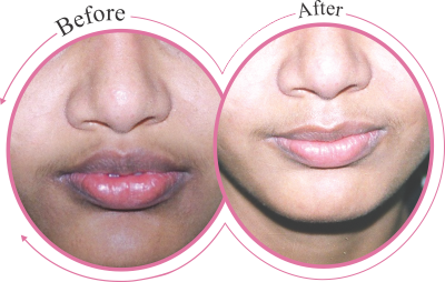 Purpose: To reduce the excessively large and bulky lip so that to harmonize these with other facial features.